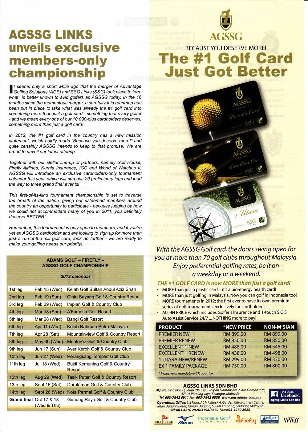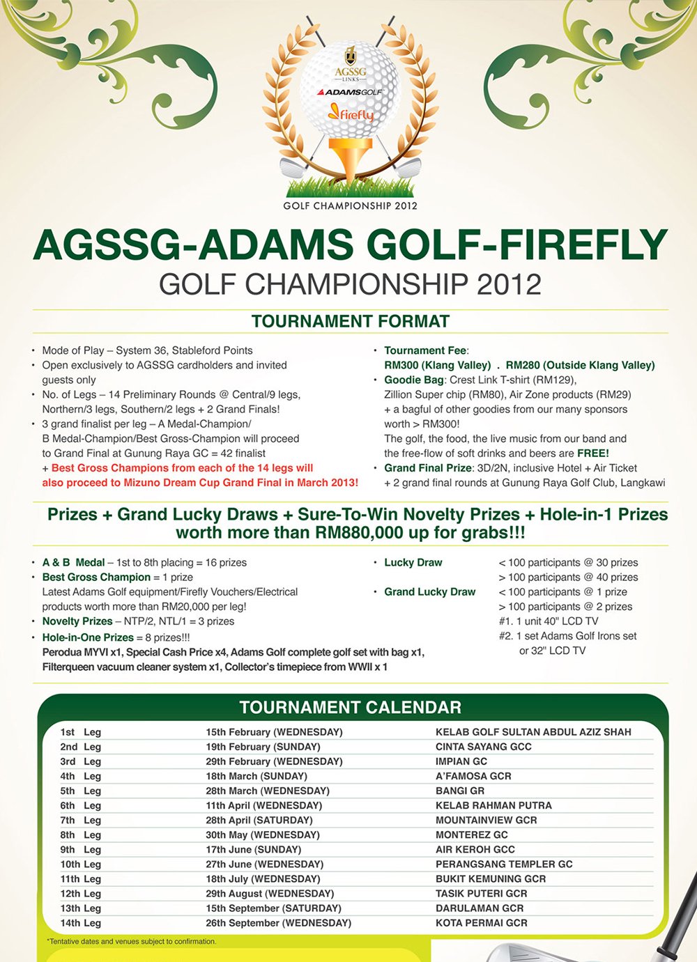 Events & Activities Events Official Launch – AGSSG GoGolf Premier Card Events PIFM Charity Golf 2022 Events AGSSG Fun Golf Event at Royal Kampung Kuantan GC Events January Medal-Agssg Fun Golf Event Events Annual Club Championship 2020/2021 Notable Past Events held by AGSSG